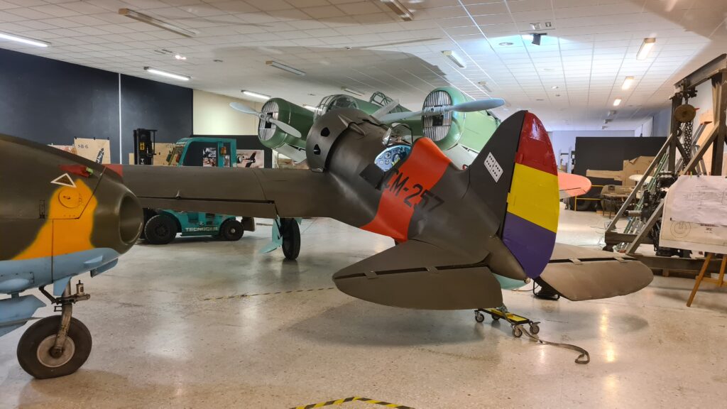 - Pues bien, el sábado hice una de mis vistas anuales al Museo de Aviación Histórica de La Sénia, Tarragona, que existe gracias a UNA persona: José Ramón Bellaubí. Ese señor un día decidió que había que recuperar el campo de aviación construido por la República y utilizado más tarde por los alemanes de la Legión Cóndor (Guernika et al). También pensó que sería una buena idea tener un museo, y como no es fácil ir por ahí comprando aviones de época como quien compra caramelos decidió construírselos él mismo a escala 1:1. Tiene bemoles la cosa ¿eh? Gracias a él pude hacer mi proyecto «Aeronáutica (Vuelo) Interior» en el MNAC hace unos años. Después de fabricar un caza Mosca y un bombardero Katiuska republicanos, se ha fijado en el otro bando para construir un Messerschmitt Bf 109 alemán como los que tuvo Franco durante la guerra. Este avión legendario y de los más famosos de la II Guerra Mundial se estrenó operativamente en España durante la guerra civil. Este está construido a partir de uno que se estrelló en el aeropuerto del Prat de Barcelona en los años cuarenta del siglo pasado. El proyecto progresa sin prisas ni pausas.