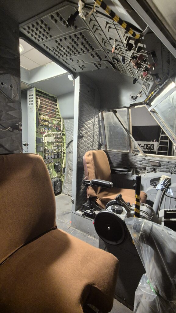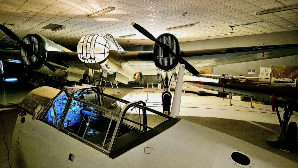 Este simulador representa la cabina de un Heinkel HE 111 construida y adaptada con la intención de potenciar el aspecto didáctico del espacio y realizar la visita más experiencial, y que nuestros visitantes puedan sentir la sensación de pilotar un aparato de estas características.